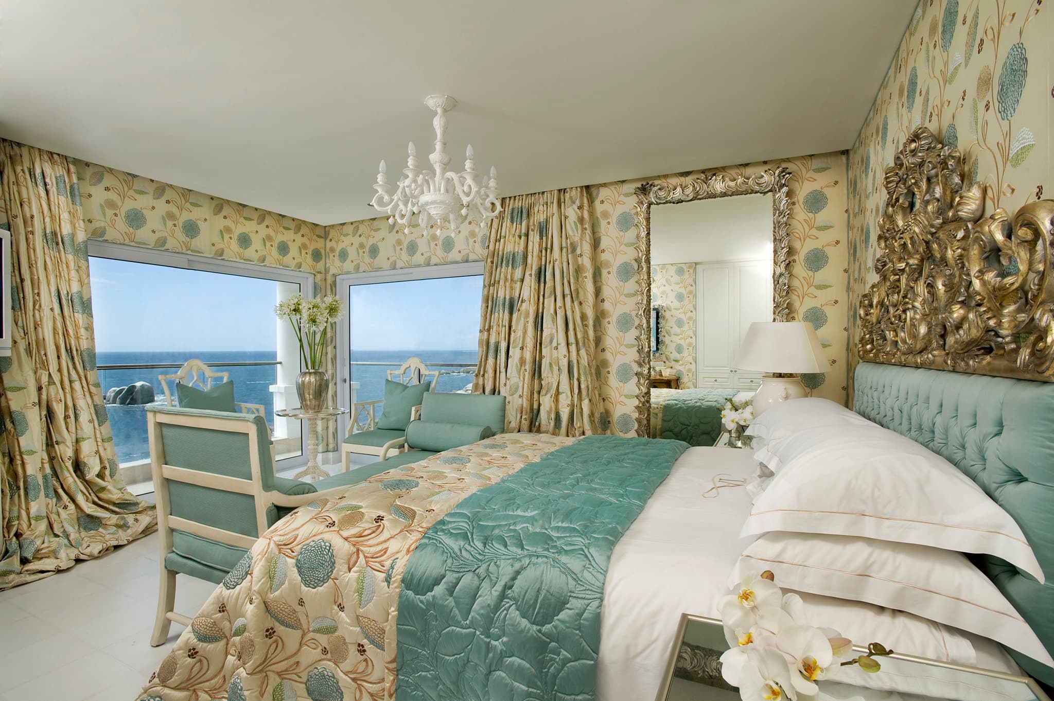 Presidential suite (170 кв. м). Балкон, гостиная со столовой зоной, небольшая кухня, спальня (кровать king-size или две отдельные кровати), 2 ванные комнаты. Дополнительно: мини-бар. Также имеется комната, которая может быть оборудована как спальня, кабинет или тренажерный зал. Расположен на последнем этаже. Вид на море, горы, сад.
